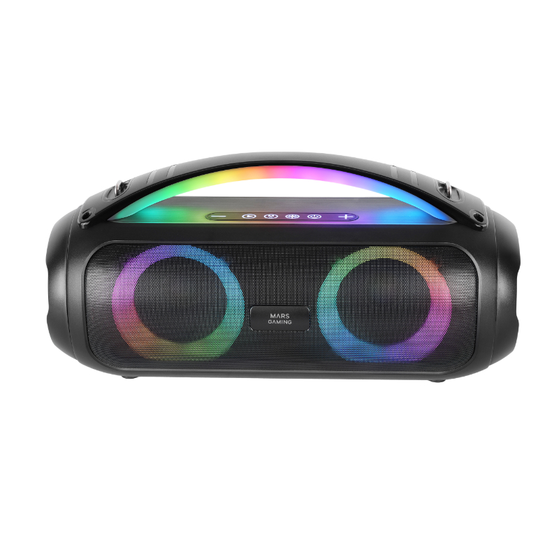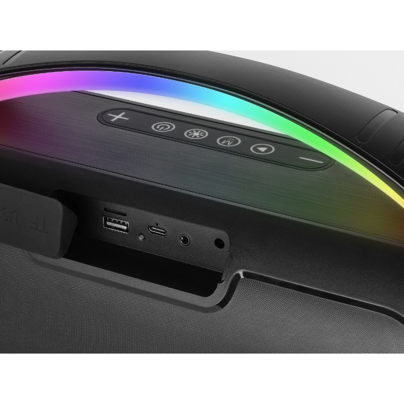 50W RMS/ Bluetooth 5.3, MicroSD, Aux-IN, FM/ Iluminación ambiental RGB/ Batería de 5000mAh