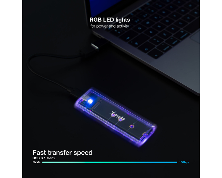CAJA EXTERNA SSD M.2 NGFF/NVMe TRANSPARENTE RGB TOOQ
