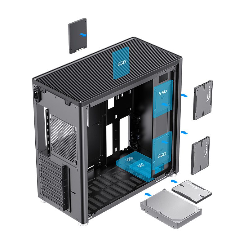 Bahías int.: 3x2.5,1x3.5 o 4x2.5/ 1xUSB3.2, 1xUSB-C3.2/ Audio In/Out