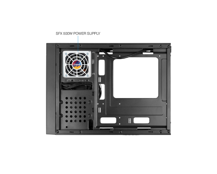 Bahias: Externas: 1 x 5'25 - Internas: 2 x 3'5 , 1 x 2'5 Color Del Producto: Negro Conectores: USB 2.0 X 2, USB 3.0 X 2, Audio In/Out, Lector de tarjetas F.A.: Si Formato: Micro ATX Formato F.A.: SFX Medidas: 380 x 100 x 300mm Potencia F.A.: 500W