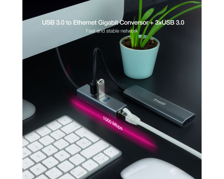 DE USB-A a 3xUSB-A, RJ45/ GIGABIT/ ALUMINIO/ 15cm