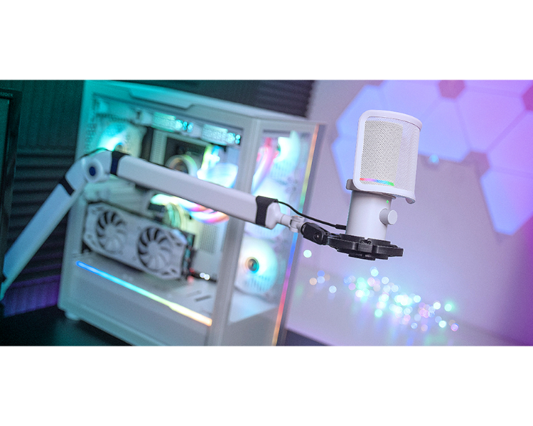 Da el salto profesional definitivo con el MMIC-XT. Un micrófono de estudio de alta definición (ADC 192 kHz) con iluminación DYNAMIC ARGB RING, brazo mecánico sólido y ajustable omnidireccional, soporte antivibración, filtro antipop de malla metálica y entrada Jack de auriculares sin latencia. Conexión USB plug & play y construcción completamente de metal para una durabilidad extrema.