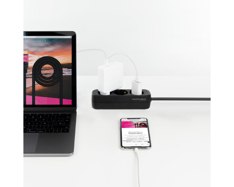 BASE DE 3 ENCHUFES x4USB (2 USB A + 2 USB-C) + INTERRUPTOR BLANCO NANOCABLE