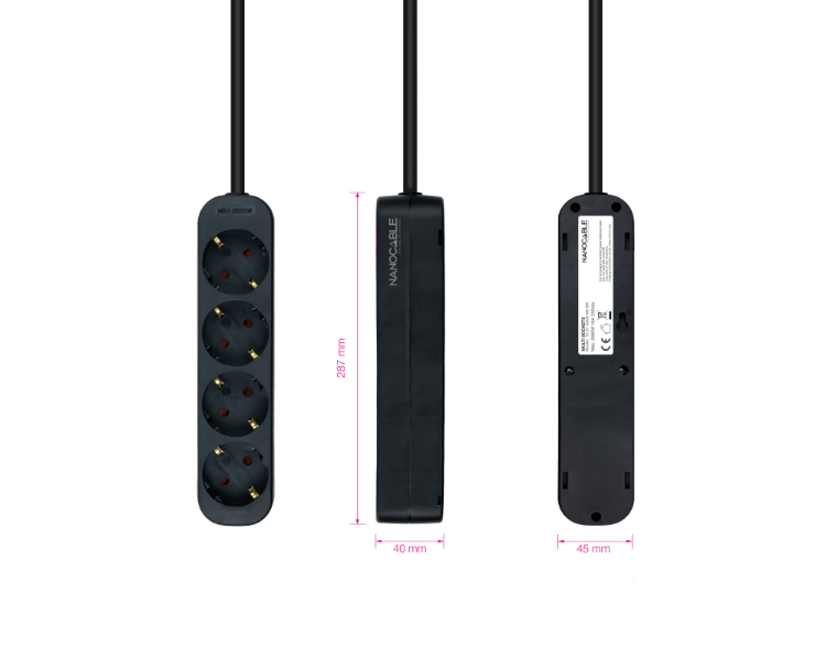 REGLETA PROTECTORA 4 TOMAS NEGRO NANOCABLE