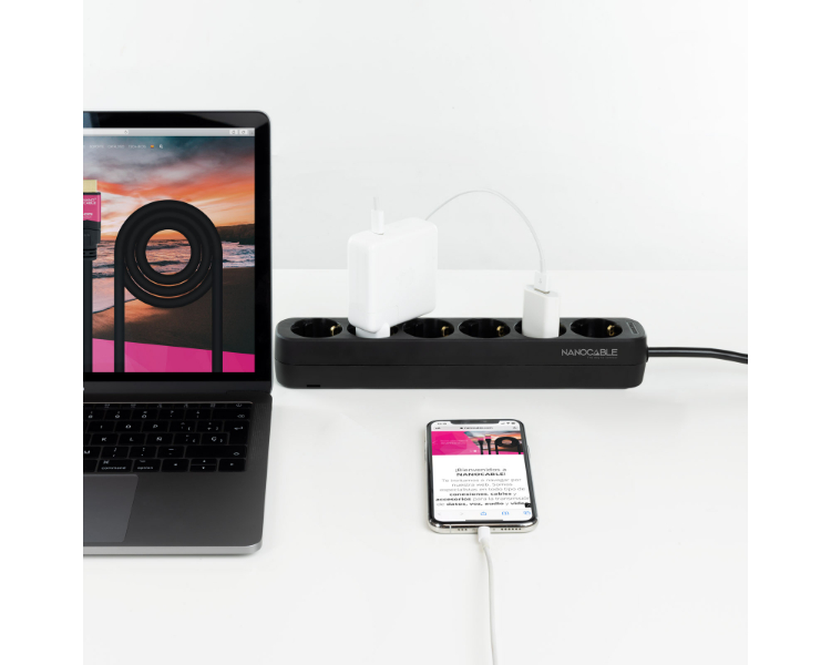 REGLETA PROTECTORA 6 TOMAS NEGRO NANOCABLE