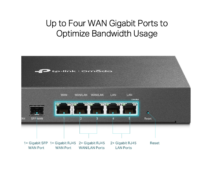 Hasta 4 puertos WAN: 1 puerto SFP WAN gigabit, 1 puerto WAN RJ45 gigabit, 2 puertos WAN / LAN gigabit optimizan el uso del ancho de banda.